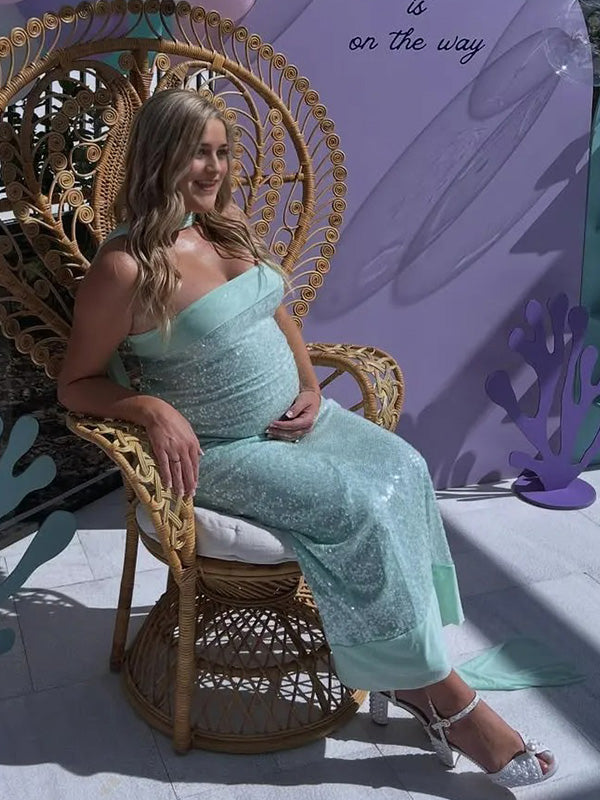 Celebrate your maternity journey in timeless elegance with this Off-the-shoulder Sequin Maternity Maxi Dress—a stunning choice for maternity photoshoots, baby showers, gender reveal parties, weddings, and other unforgettable moments.