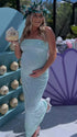 Features: Off-the-shoulder design with flowing ribbons, long and figure-flattering silhouette, sequin detailing.