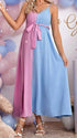 Casualwear-Blue-pink Colorblock Gender Reveal Maternity Dress