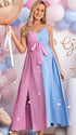 - Gender reveal maternity dress with colorblock pink & blue design