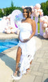 Casualwear-Tube Ruffle Maternity Party Maxi Dress