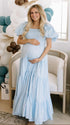 Casualwear-Ruffle Puff Sleeve Maternity Maxi Dress