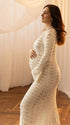 Make your maternity moments unforgettable with this White Knit Ruffle Bodycon Maternity Maxi Dress— Ideal for photoshoots, baby showers, gender reveals, weddings,beach sessions outdoor shoots, holidays, portraits and other special moments.