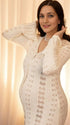 Casualwear-White Knit Ruffle Bodycon Maternity Maxi Dress