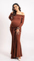 Chic- Bodycon Off Shoulder Long Sleeves Maternity Phootshoot Maxi Dress