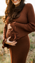 Chic-Brown Knitwear Ruffle Flare Sleeve Maternity Maxi Dress