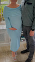Make your maternity moments unforgettable with this Blue Knitting Sheer Off Shoulder Maternity Maxi Dress— Ideal for photoshoots, baby showers, gender reveals, weddings,beach sessions outdoor shoots, holidays, portraits and other special moments.