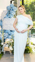 Chic-Light Blue One-Shoulder Ruffled Asymmetrical Maternity Maxi Dress