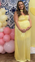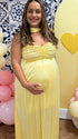 Make your maternity moments unforgettable with this Light Yellow Off-Shoulder Pleated Maternity Maxi Dress— Ideal for photoshoots, baby showers, gender reveals, weddings,beach sessions outdoor shoots, holidays, portraits and other special moments.