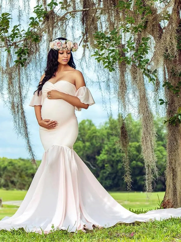 Chic-Off Shoulder Bodycon Photoshoot Maternity Maxi Dress