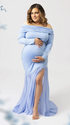 Make your maternity moments unforgettable with this Blue Off Shoulder Mesh Splicing Maternity Maxi Dress— Ideal for photoshoots, baby showers, gender reveals, weddings,beach sessions outdoor shoots, holidays, portraits and other special moments.