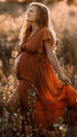 Chic-Orange A-Line Ruffle Boho Photoshoot Maternity Maxi Dress
