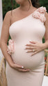 Celebrate your pregnancy with timeless elegance in this One-shoulder 3D Flowers Maternity Maxi Dress — perfect for maternity photoshoots, baby showers, gender reveal parties, weddings, and other memorable occasions.