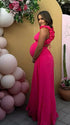 Chic-Ruffle Crisscross Back Maternity Maxi Dress