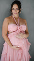 Chic-Ruffle Halter Neck Maternity Maxi Dress