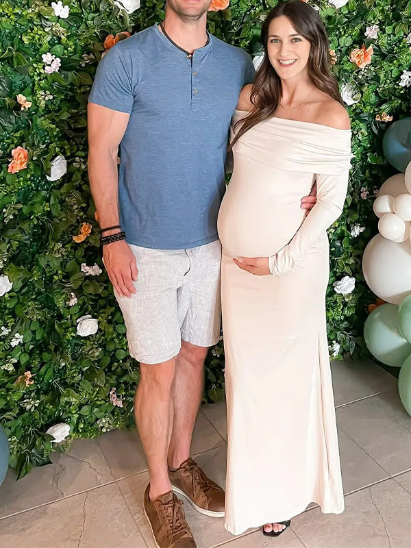 Celebrate your maternity journey in timeless elegance with this Slim-Fitted Off-Shoulder Maternity Maxi Evening Gown Dress—a stunning choice for maternity photoshoots, baby showers, gender reveal parties, weddings, and other unforgettable moments.
