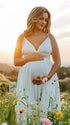 Chic-V-neck Backless Strapless Double-Layer Ruffled Maternity Maxi Dress