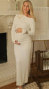 Chic-White Long Sleeve Draped Neckline Maternity Maxi Dress