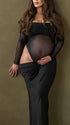 Crop- Mesh Splicing Bodycon Party Maternity Maxi Dress