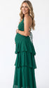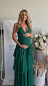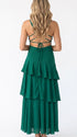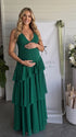 Emerald Green Tiered Ruffle Backless Maternity Maxi Dress