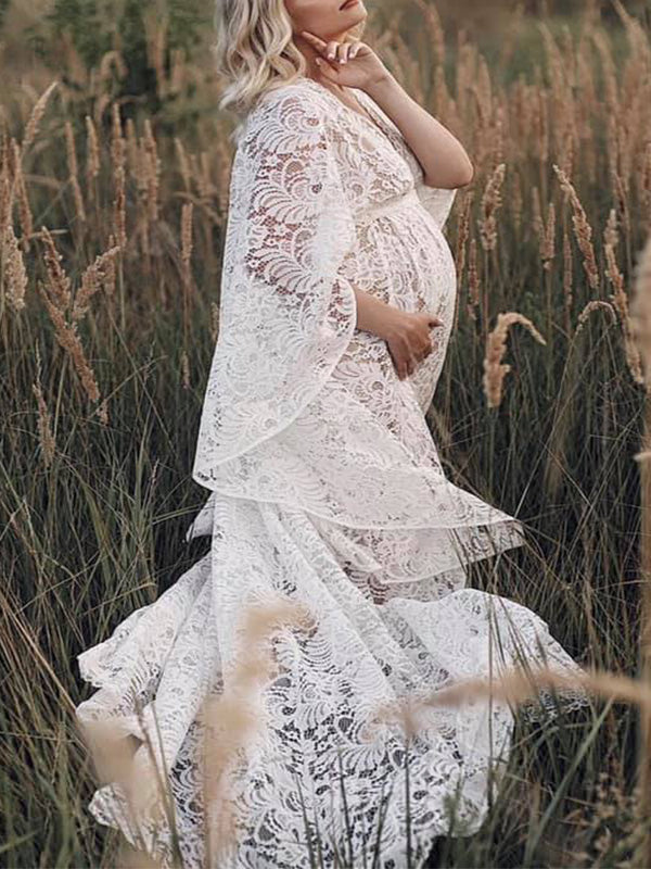 Lace- Boho Backless Photoshoot Maternity Shoot Maxi Dress