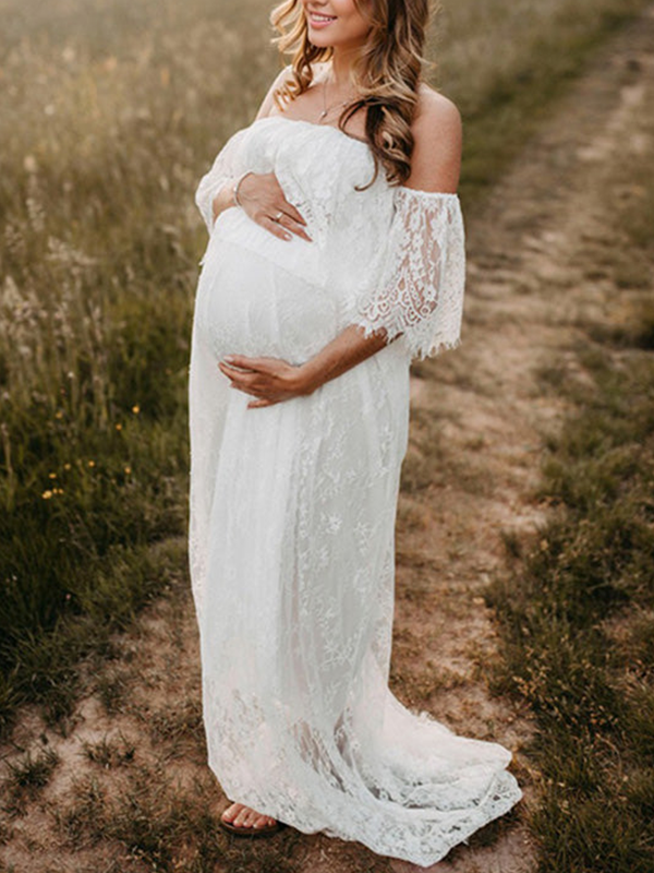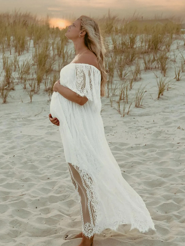 Lace-Boho White Off Shoulder Photoshoot Maxi Dress