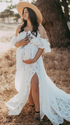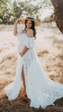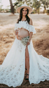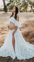 Lace- Off Shoulder Crop Boho Photoshoot Maternity Maxi Dress